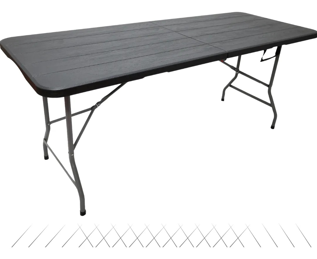 Versátil, resistente e com um visual que valoriza qualquer ambiente! A Mesa Dobrável 180cm é ideal para eventos, festas, camping, uso comercial ou doméstico, oferecendo praticidade sem abrir mão da estética. Seu grande diferencial está no tampo texturizado, que lembra o acabamento da madeira, trazendo um toque natural e elegante. Esse detalhe faz com que a mesa combine perfeitamente com ambientes externos, criando uma atmosfera mais aconchegante e sofisticada para seus eventos.