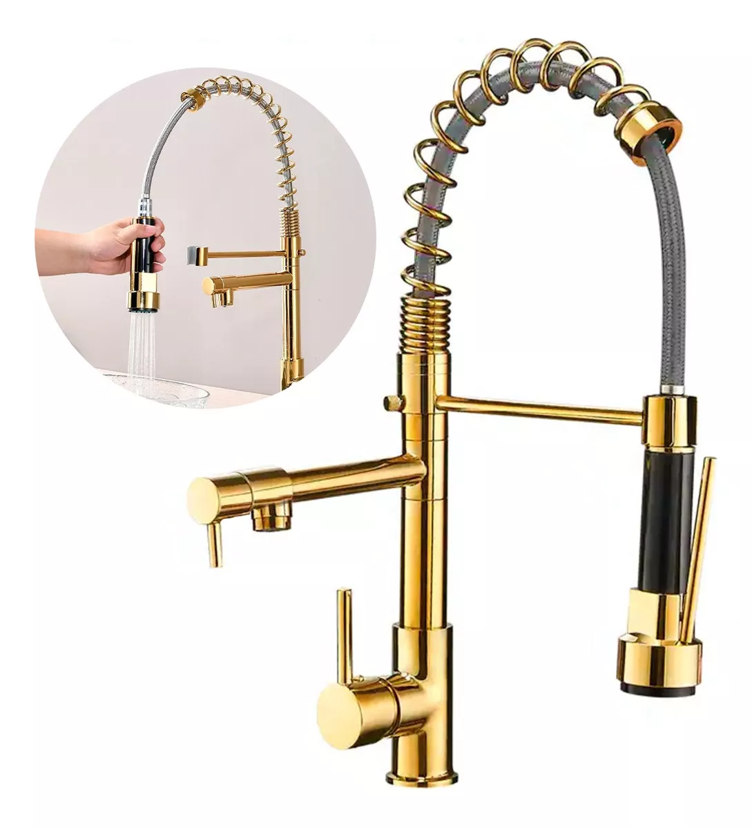 Torneira De Cozinha Dourada Pia Gourmet Monocomando Inox 304